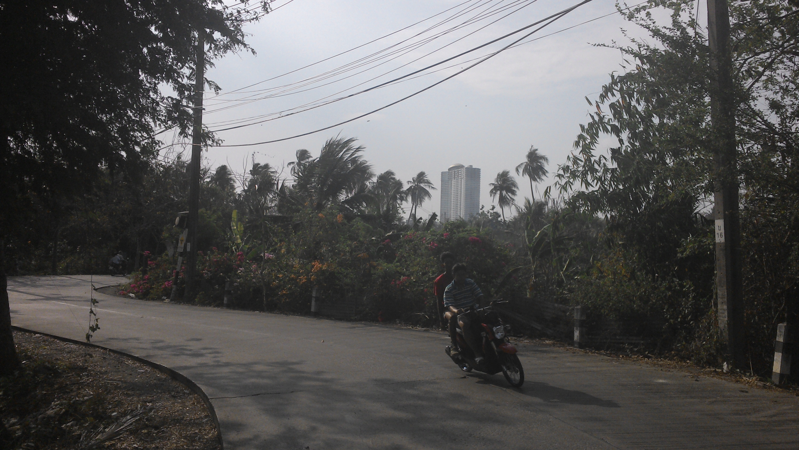 Ganz einfach beschrieben, das wird schon klappen, so meine ersten naiven Gedanken. Also auf in den Skytrain zur Haltestelle Bang Na (die uebrigens gar nicht mehr auf dem lonely planet-Skytrain-Netz verzeichnet ist). Von dort ein Taxi zum Pier – so theoretisch einfach, so praktisch etwas verzwickt. Denn wie bekomme ich jetzt ein Taxi dazu, auf einer dreispurigen Strasse anzuhalten. Wie gut, dass am Strassenrand gerade eine Gruppe junger Thais stand, zwei davon mit Motorrad und dazugehoeriger Weste, die sie als offizielles Mototaxi kennzeichnete (vielen Dank, liebe Leipziger fuer diesen Tip). Das einzige Prolem, sie verstanden kein Englisch, ein Problem das mir vorher gar nicht in den Sinn gekommen ist. Ich versuchte es dann mit „Bangkok Tree House“, weil ich dachte, dass dies wohl noch am ehesten bekannt sein sollte. Die Jungen schienen zu verstehen was ich meinte, also gut, auf auf den Sozius.