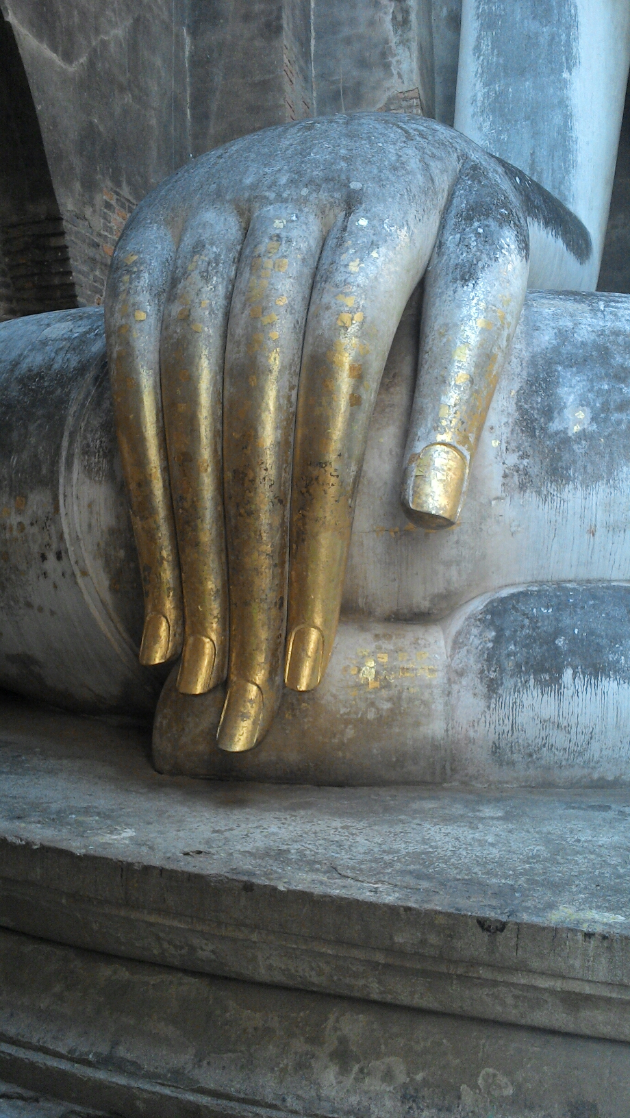 Ich fuhr eine Weile herum, konnte alles in Ruhe erkunden und den Sonnenaufgang bestaunen. Später fuhr ich dann noch weiter auf entlegenere Teile des Geländes und besonders Wat Si Chum beeindruckte mich sehr mit dem 15m hohen Buddha und der berühmten goldenen Hand.