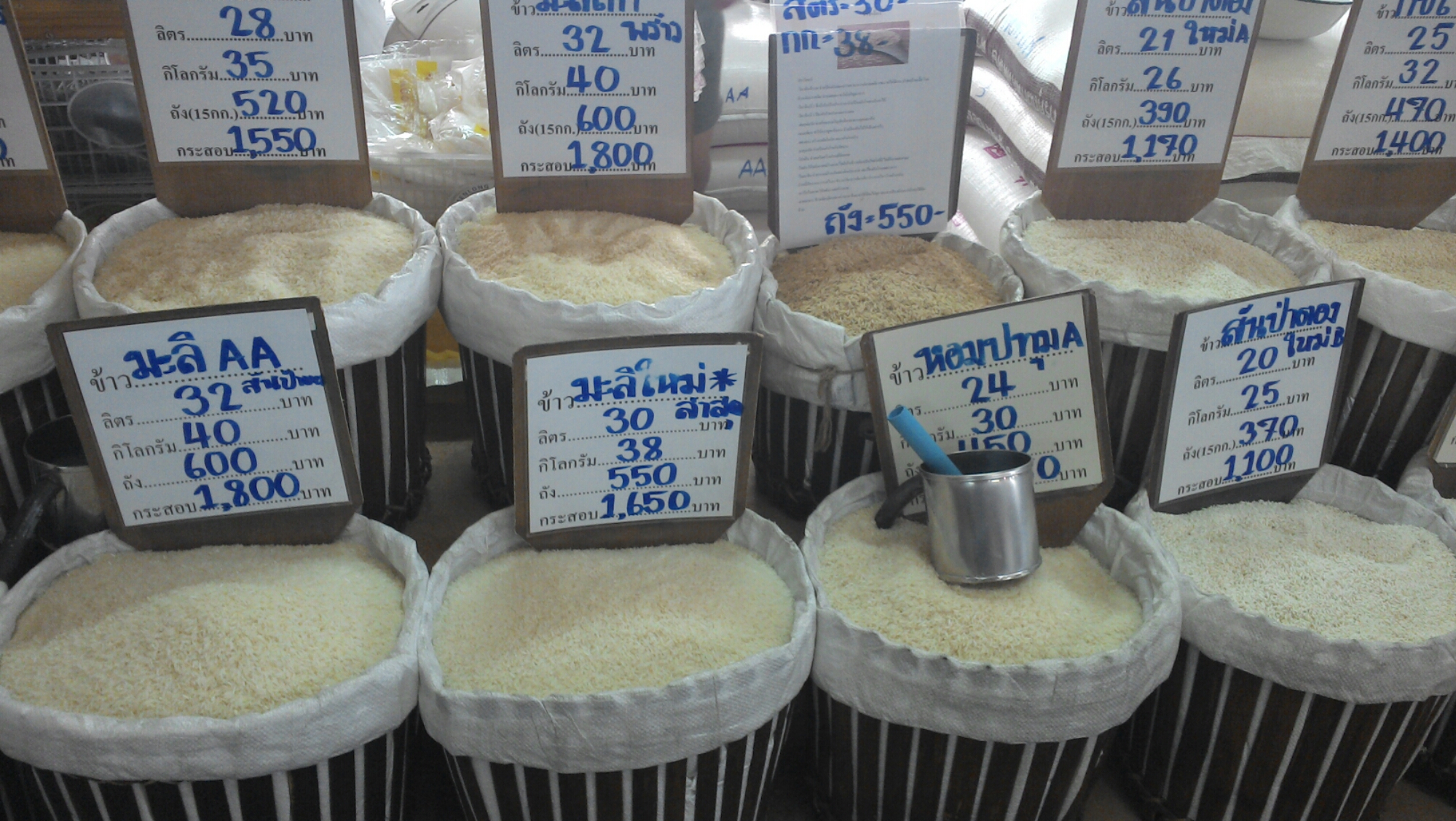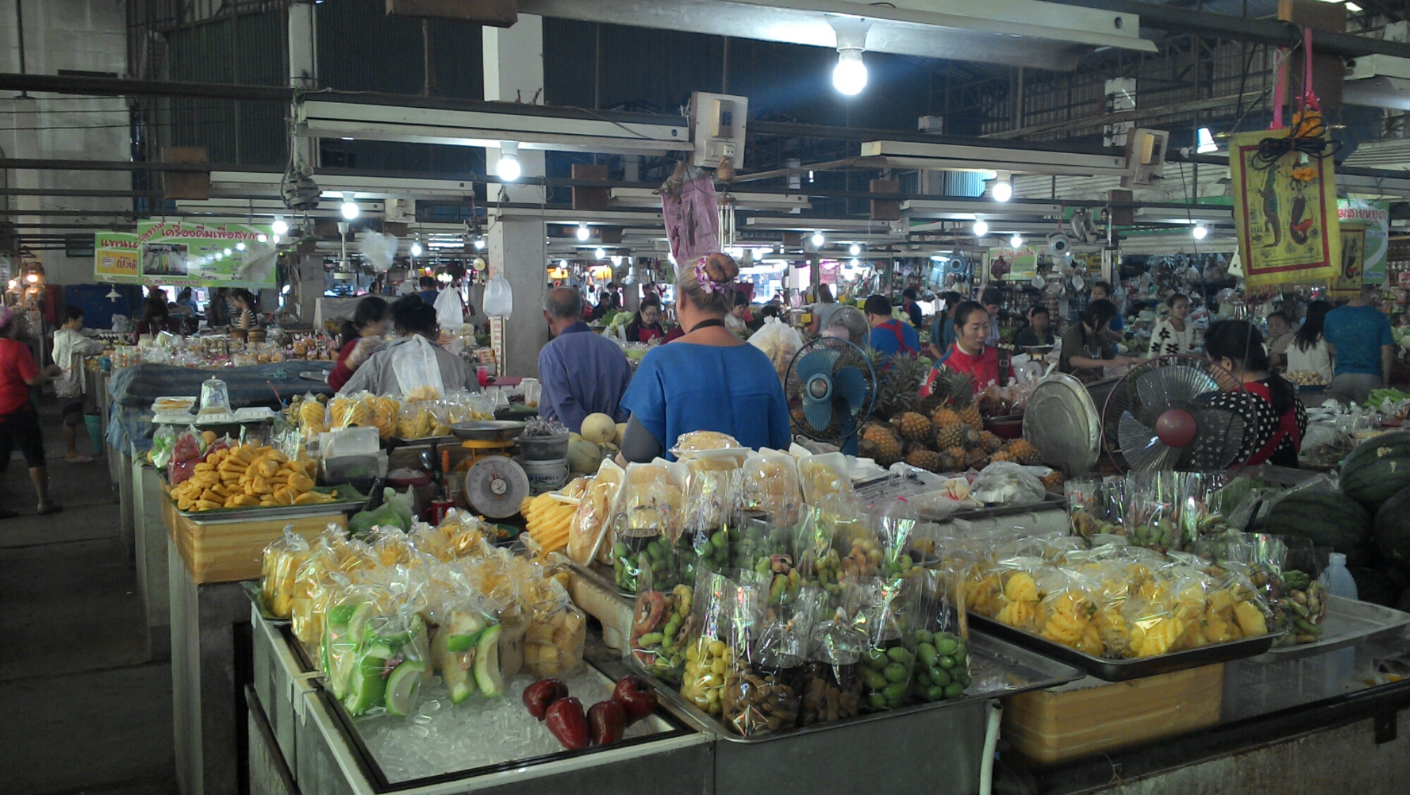 Über das Hostel war es einfach, einen Kurs zu buchen. Er sollte den ganzen Tag dauern. Um halb 9 wurde ich dann abgeholt und es wurden, wie üblich, noch weitere Leute eingeladen. Sammy, der Leiter des Kurses, war gleich sehr sympathisch. Auf dem Weg zu seiner Farm außerhalb von Chiang Mai hielten wir dann noch an einem Markt und er erzählte uns etwas über verschiedene Sorten Reis und zeigte uns, wie Kokosnussmilch hergestellt wird.