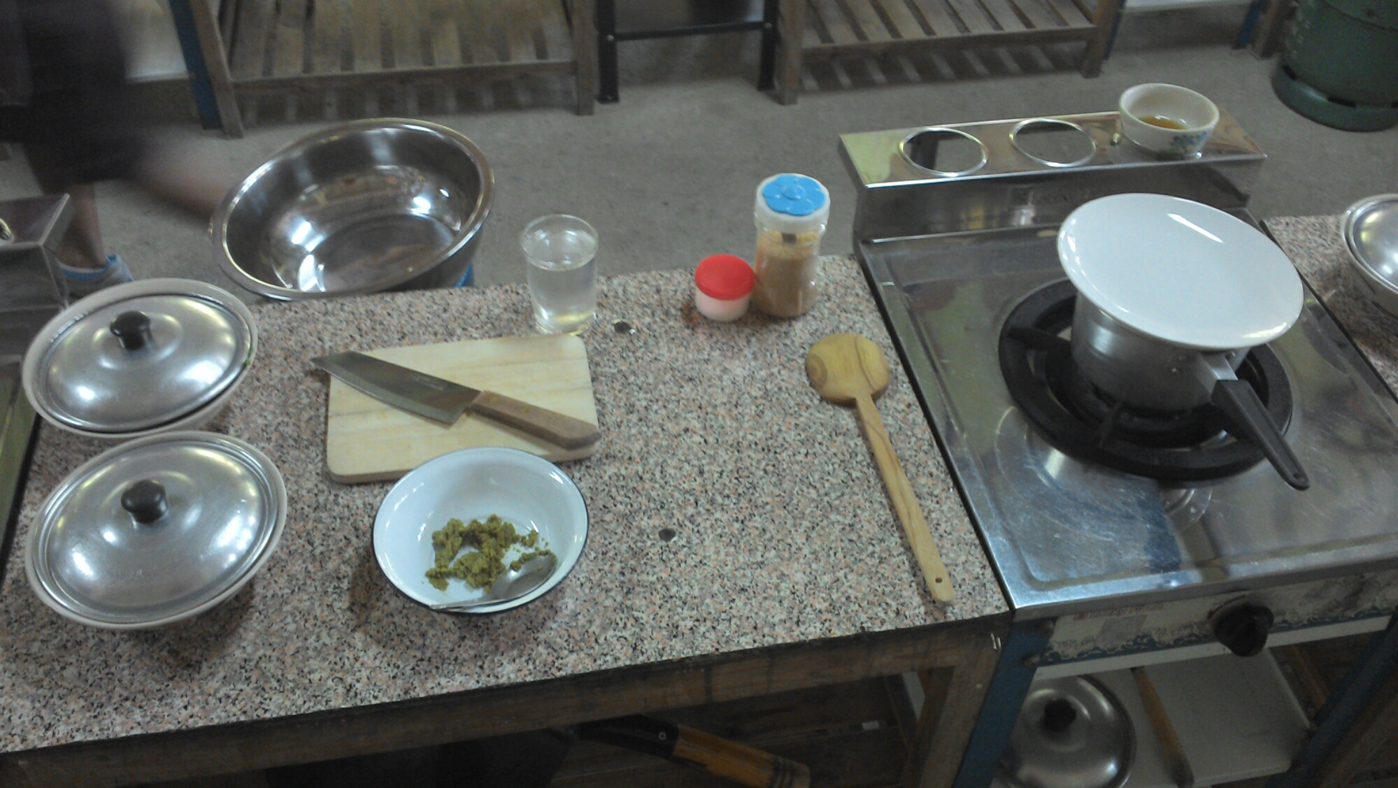 Als erstes bereiteten wir mit einem Mörser Currypaste zu und bereiteten dann jeweils grünes, rotes oder gelbes Curry.
