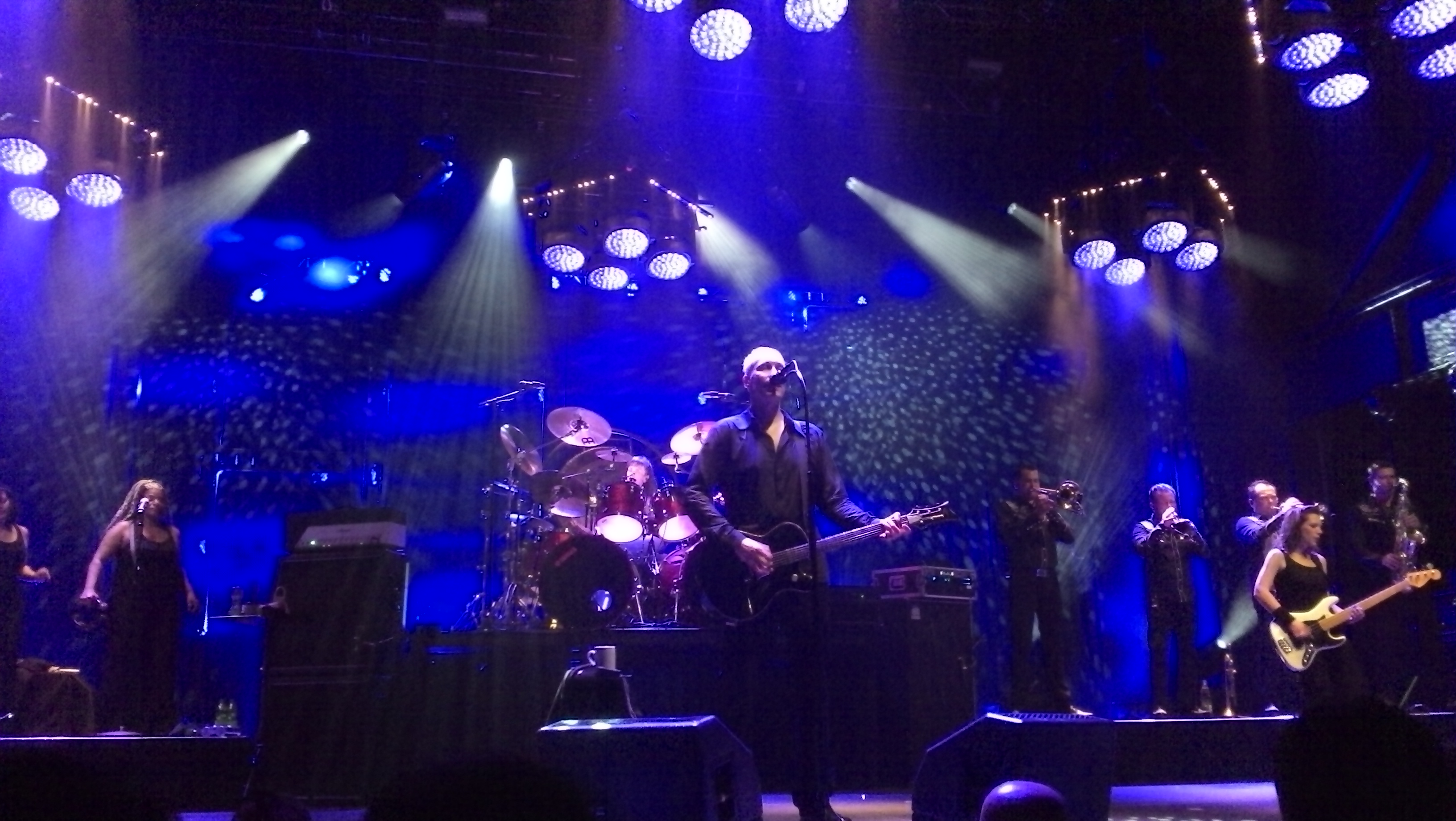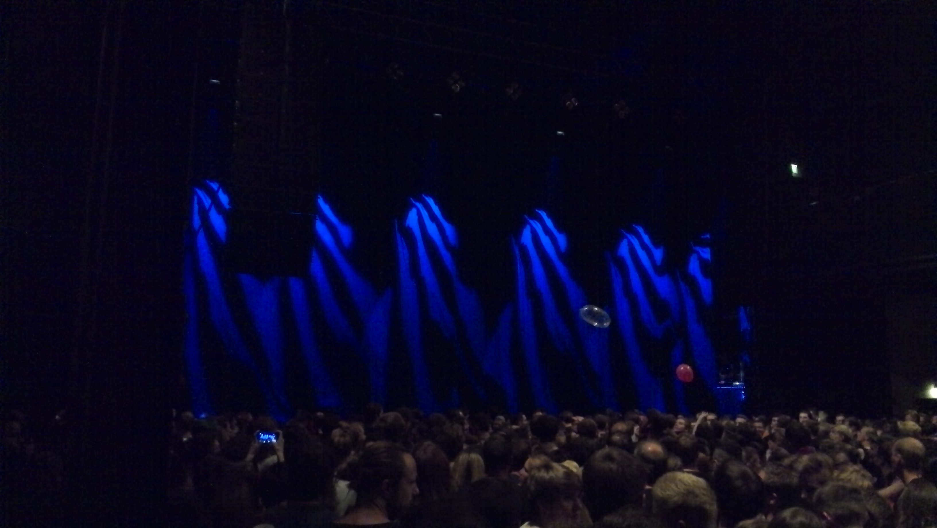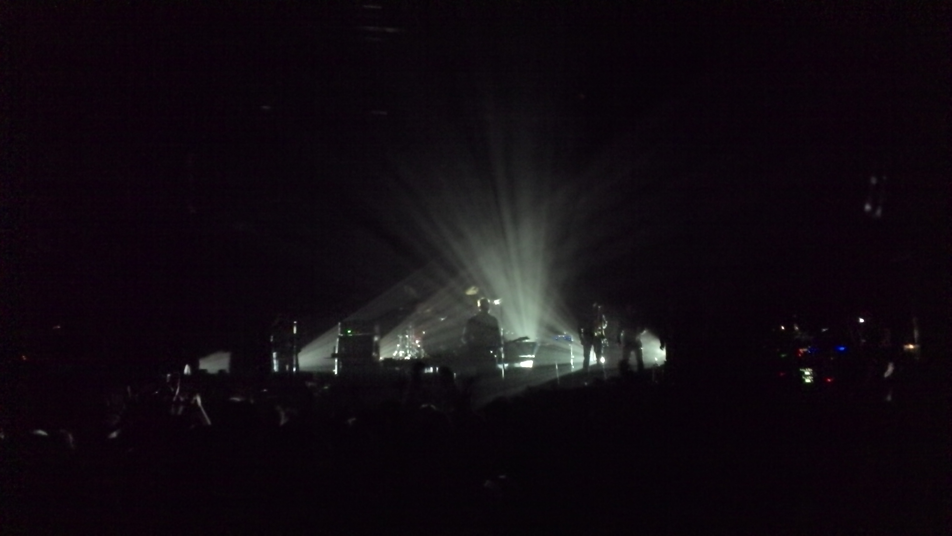 Als ich an der Halle ankam, war der Einlass schon vorbei und die Halle voll, was abzusehen war, da es – wie schon geschildert – ausverkauft war. Ich stellte mich relativ in die Mitte links und wartete geduldig auf den Beginn. Da ich alleine auf dem Konzert war beschäftigte ich mich noch mit meinem Handy und sendete ein paar Tweets ab.