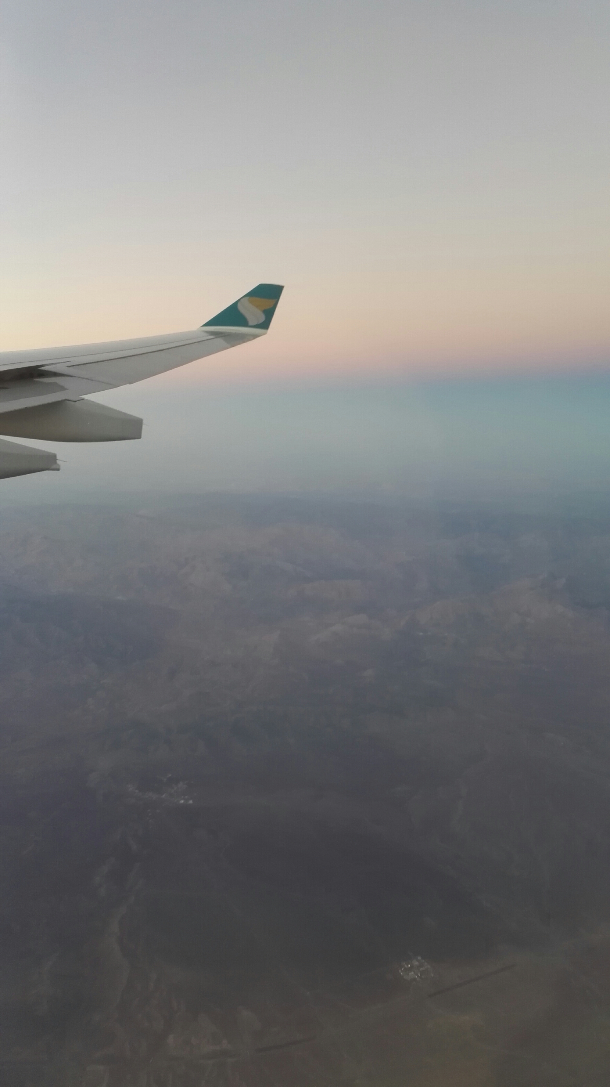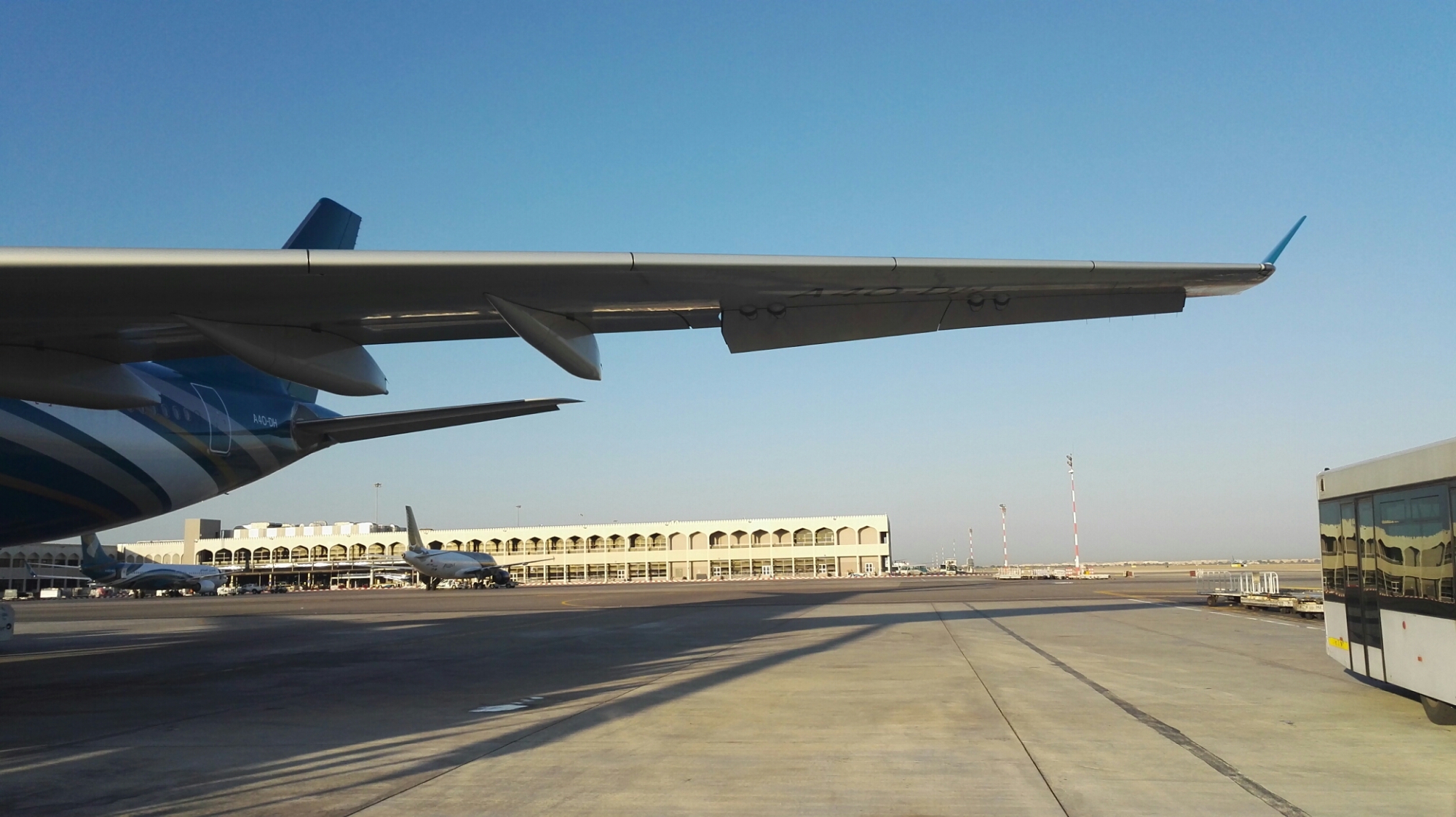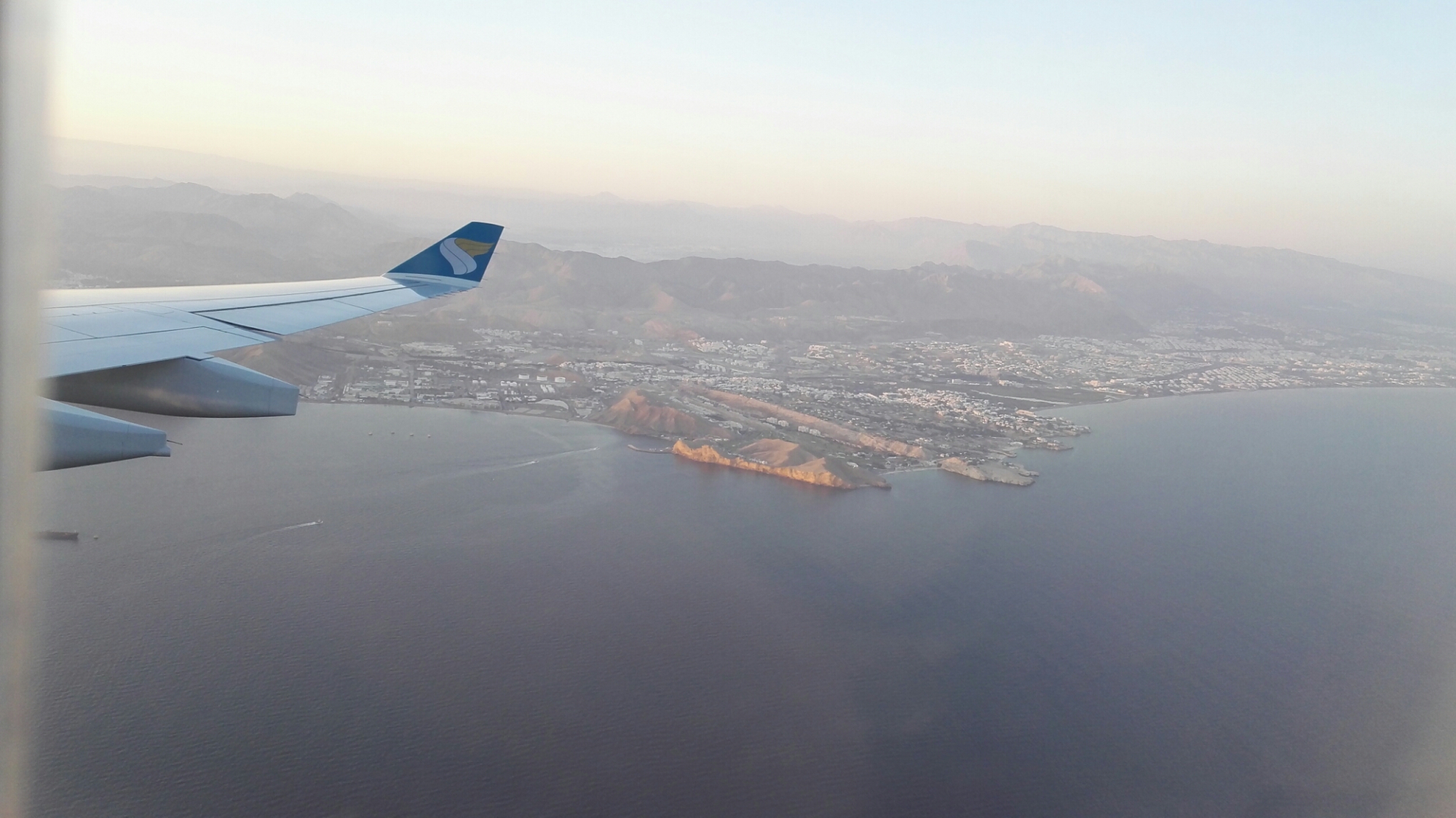 Erster Zwischenstop nach gut 6 Stunden war Muskat im Oman. Im Anflug sah man schon die karge Berg- und Wüstenlandschaft. Sehr schön anzusehen.