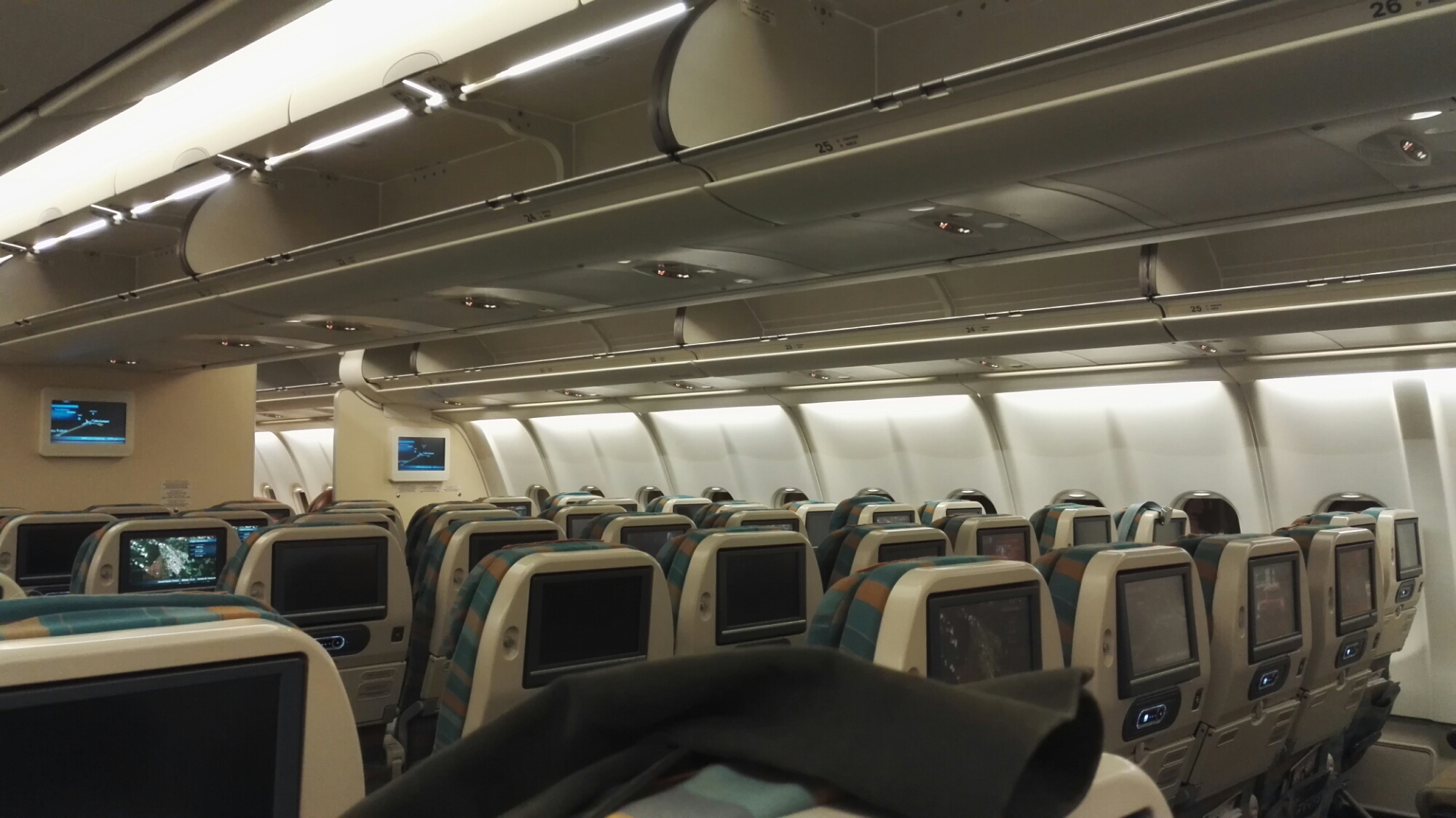 Ab Zürich ging es los, sehr geschickt wenn man in Konstanz wohnt. Also ab in die Bahn und auf zum Flughafen. Natürlich viel zu früh, aber besser so als den Flieger zu verpassen. Den Flug hatte ich mit Oman Air gebucht, ein sehr günstiges Angebot. Es ging dann auch pünktlich los. Einen Fensterplatz hatte ich mir schon bei der Buchung gesichert. Meine Filmauswahl fiel auf „Everest“ und ich habe es nicht bereut, sondern am Ende sogar ein Tränchen verdückt. „Steve Jobs“ dagegen hat mich weniger gepackt und ich habe ihn nicht ganz gesehen. Zwischendrin versuchte ich zu schlafen, was eher schlecht als recht funktioniert.