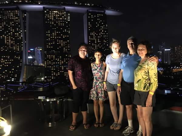 Nach der Show lud uns das amerikanische Ehepaar noch ein, auf einen der Bäume zu fahren. Oben ist ein Restaurant und man hat einen Blick über Singapur. Im Entritt von 18 Singapur Dollar ist ein Getränk inklusive. Dies tranken wir dann in Ruhe, genossen den Ausblick und machten uns irgendwann, ich für meinen Teil sehr müde, auf den Weg zurück zum Hostel.