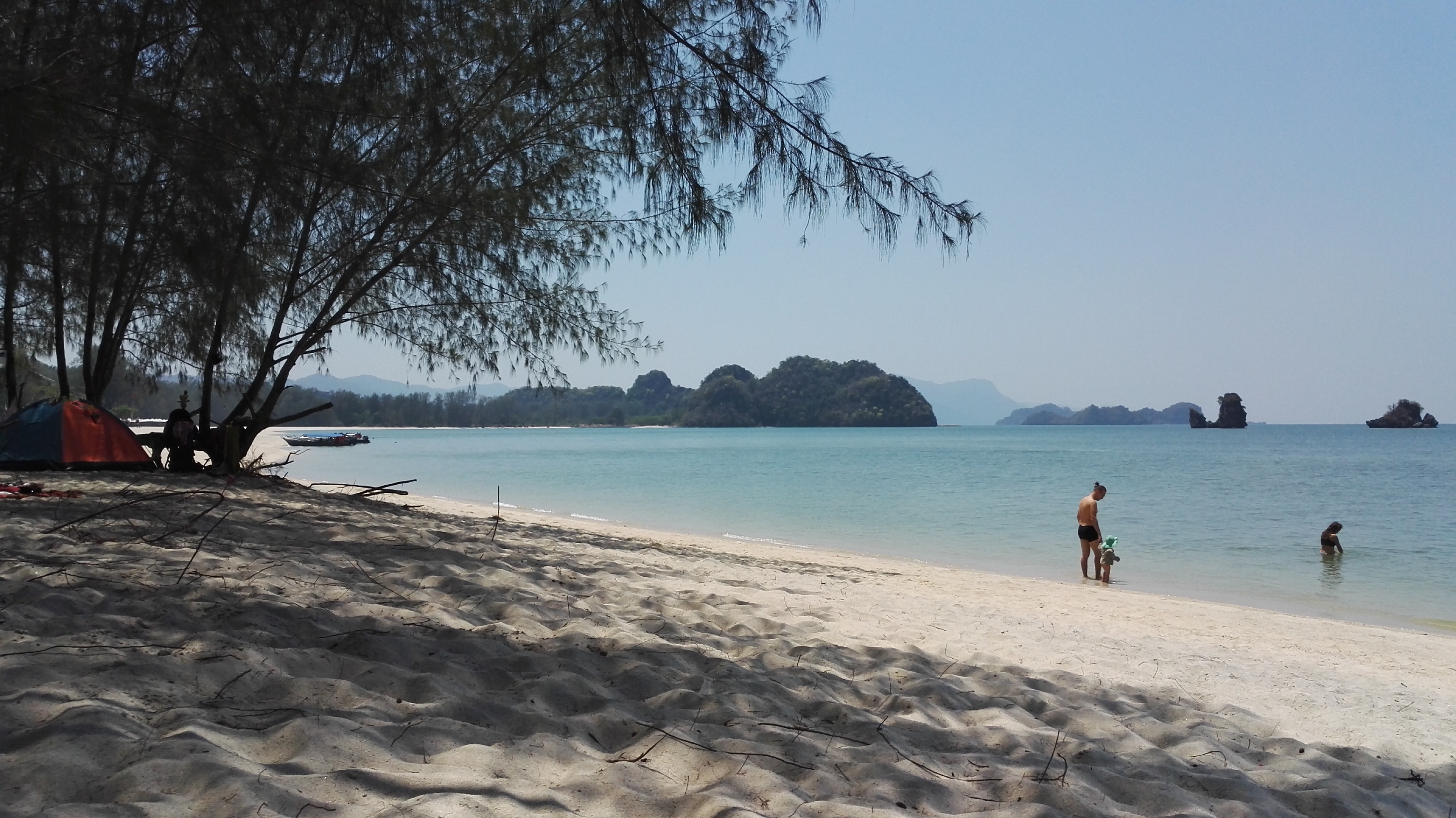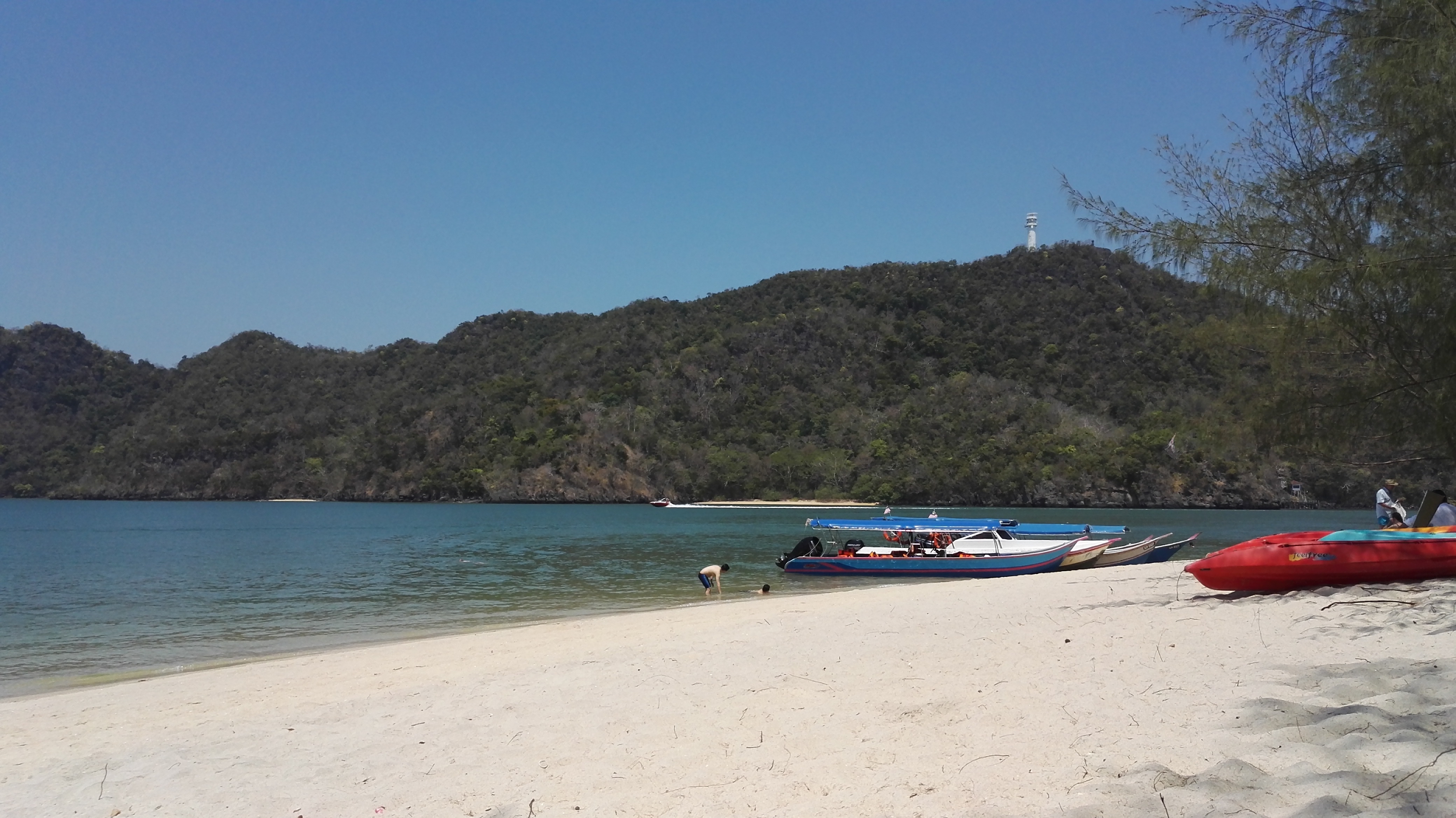 Nach einer weiteren Fahrt war ich dann endlich da, am Strand, bei dem es sich wohl um Tanjung Ruh handelte – glaube ich zumindest. Dort eilte ich dann erst mal unter einen Baum, weil der Sand sehr sehr heiß war und ich mir gefühlt fast die Fußsohlen verbrannt hätte. Aber ruhig war es da wirklich. Als ich ankam war gerade noch eine Touristengruppe da, die mit einem Boot gekommen war. Als die aber dann nach einer halben Stunde wieder gingen, waren außer mir noch eine Hand voll andere Menschen da, ansonsten war es sehr einsam. Das Wasser war auch schön, aber zum Schnorcheln war es leider immer noch zu trüb, so dass ich das Equipment erst gar nicht auspackte.