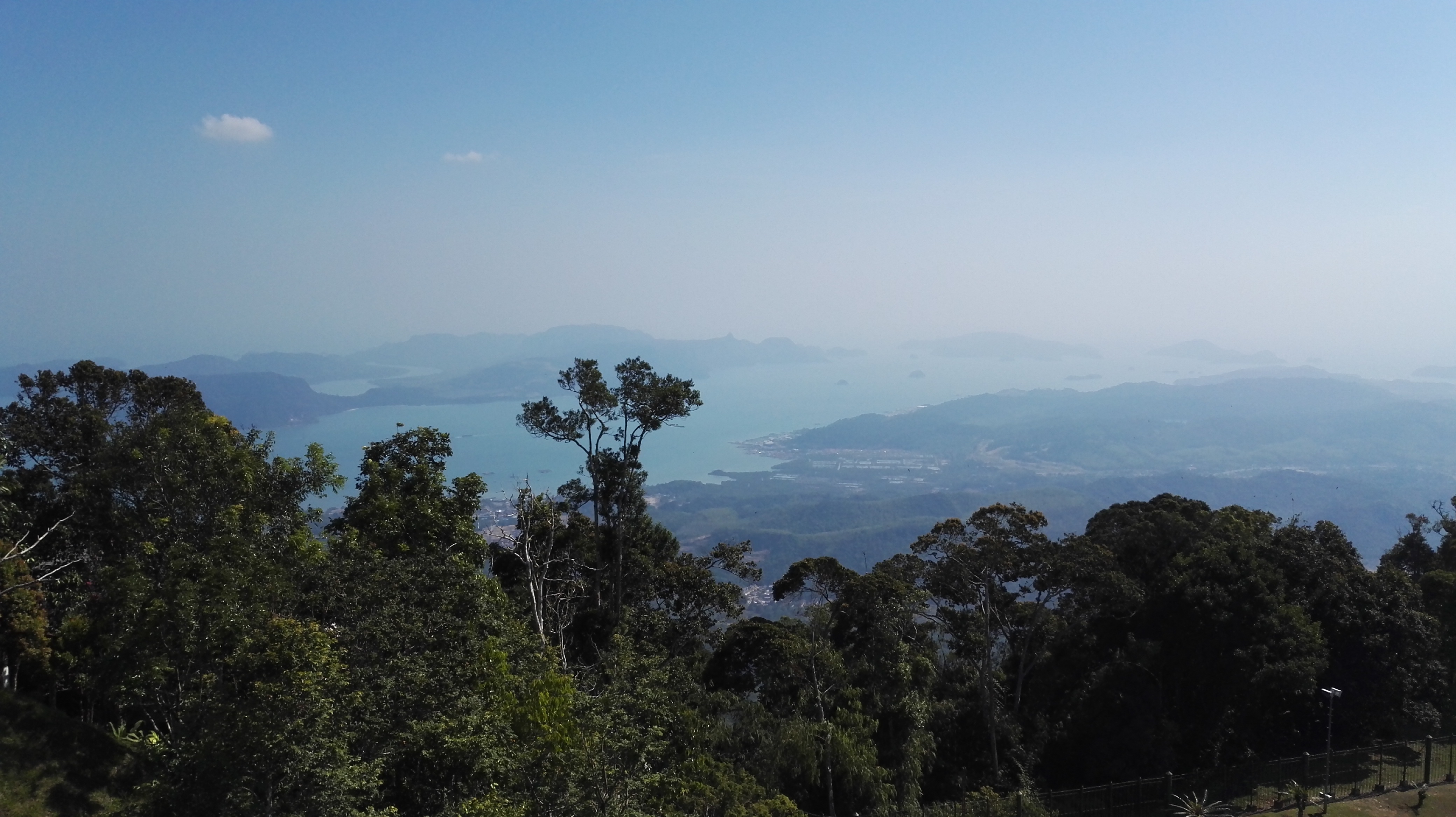 Das Resort war ziemlich ausgestorben, was ich auf der etwas planlosen Suche nach einer Toilette, feststellen durfte. Man zahlt unten etwas Eintritt und kann dann oben auf den Aussichtsturm. Von oben hat man einen tollen Ausblick auf die Insel und außer mir war nur noch ein Pärchen oben – es nannte sich übrigens selbst das hochgelegenste Restaurant Langkawis, war wohl aber auch das mit dem wenigsten Service, da man sich selbst bedienen musste. Also lief ich ein paar Mal um den Turm und genoss die Aussicht.