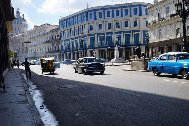 Ein zweites bekanntes Viertel ist „Centro Habana“, also Havannas Zentrum. Dort ist eine große Prachtstraße, die arg an las Ramblas in Barcelona erinnert. Dort steht das Capitolio, das an das Kapitol in Washington D.C. erinnert. Außerdem gibt es dort ein paar WLan-Spots, die vor allem entlang der Prachtstraße zu finden sind. Dies erkennt man vor allem daran, dass sich dort traubenartig Menschen ansammeln, die auf ihr Handy starren. Etwas, was man sonst in Kuba eigentlich nie sieht – außer eben an solchen Spots. Das Revolutionsmuseum, vielfach angepriesen, aber ehrlich gesagt nicht so ganz mein Fall, ist dort ebenfalls zu finden.