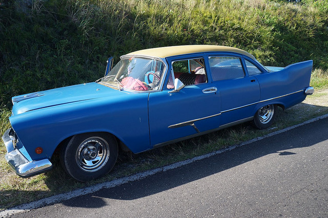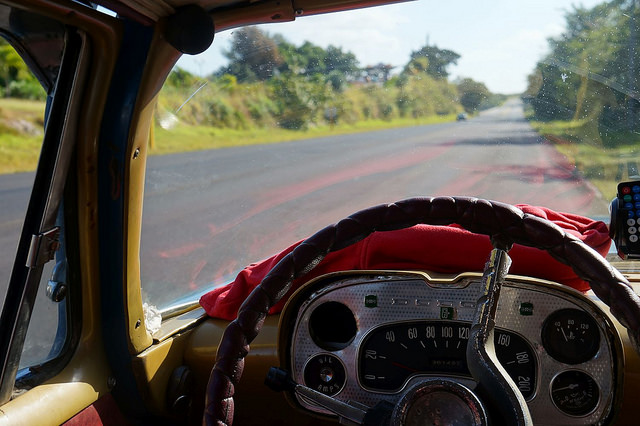 Günstig war das Ganze dann natürlich auch nicht mehr, aber da wir zu viert waren, ging es im Endeffekt dann noch mit dem Preis. Pünktlich am Morgen stand der Wagen vor unserer Tür und holte uns von unserer Wohnung ab. Dem kubanischen Klischee entsprechend handelte es sich um einen US-Oldtimer. Sehr schick anzusehen und Platz war hinten für drei Leute auch genug.